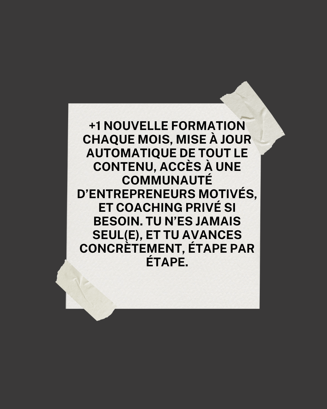🎯 Une bibliothèque illimitée de formations digitale en format vidéo professionnelles court, faciles à suivre, claires et directement applicables. | 👥 Communauté dynamique | 💬 Coaching expert | 🔄 Mises à jour continues.